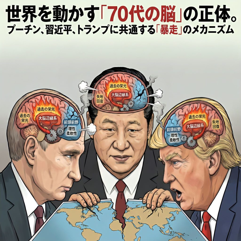 ウクライナ侵攻を続けるプーチン氏、台湾統一を掲げる習近平氏、そして「アメリカを再び偉大に」と叫び返り咲いたトランプ氏。 世界を大きく揺るがしているこの3人の指導者には、ある共通点があります。それは、「過去の栄光を取り戻したい」という強烈な... 高齢者
