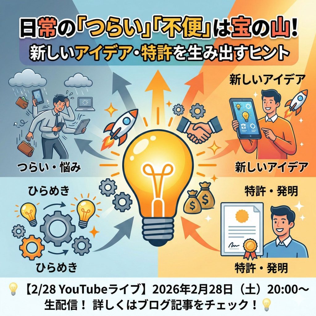 日常の「つらい」「不便」は宝の山!新しいアイデアや特許を生み出すヒント【2/28 YouTubeライブ】