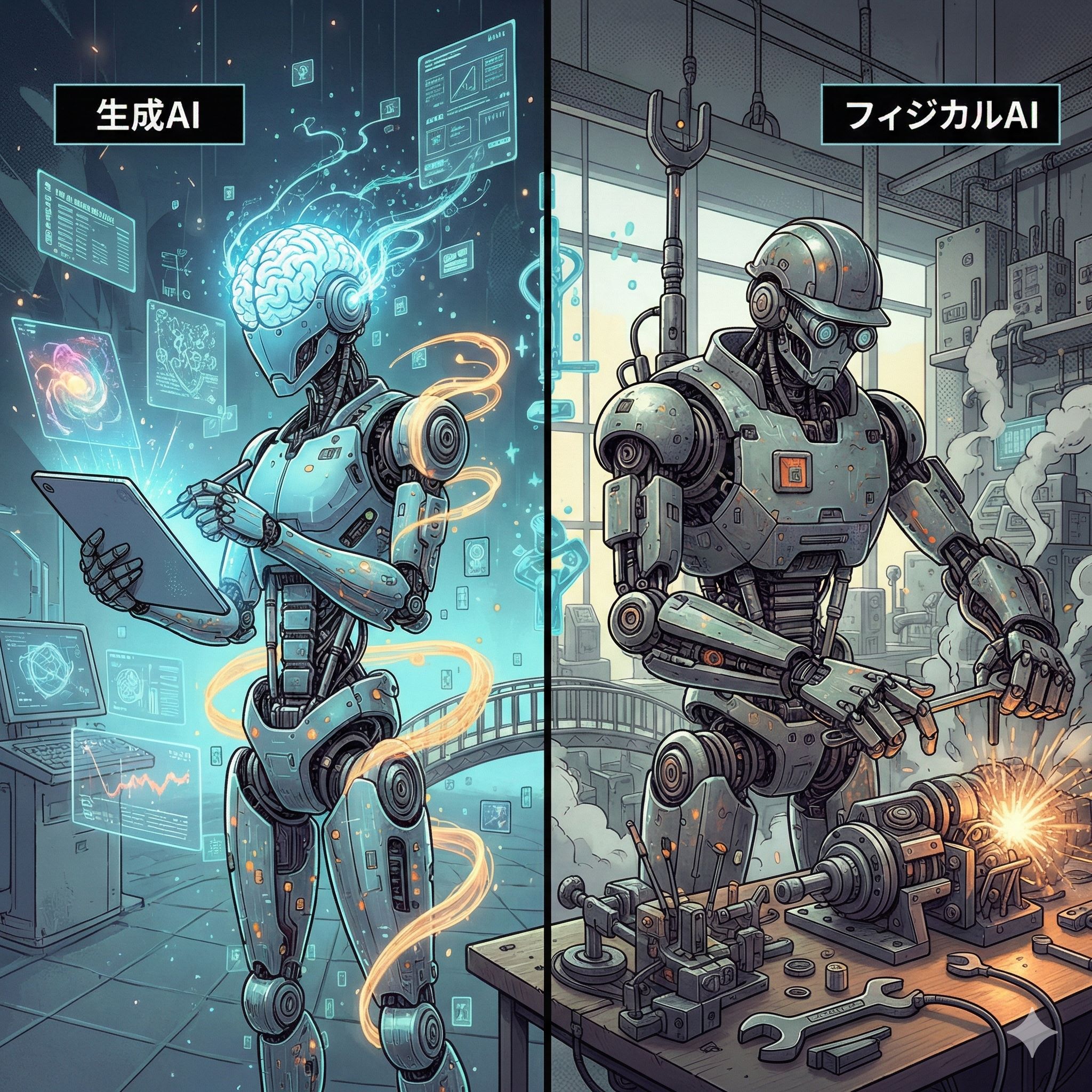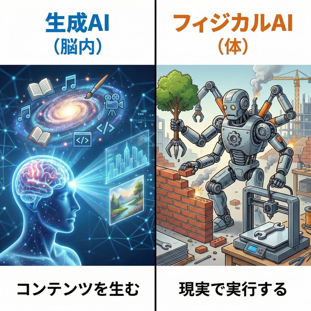 「生成AI=アイデアやイラスト」「フィジカルAI=実現化」は、方向性としてOKです。