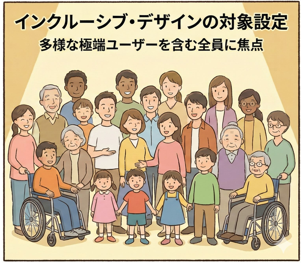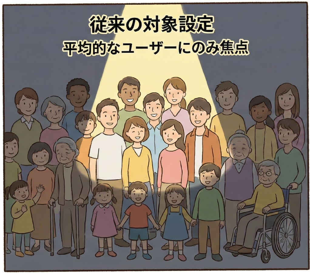 「平均的な人」だけを前提にせず、困りごと(極端なニーズ)を起点に設計する考え方です。
